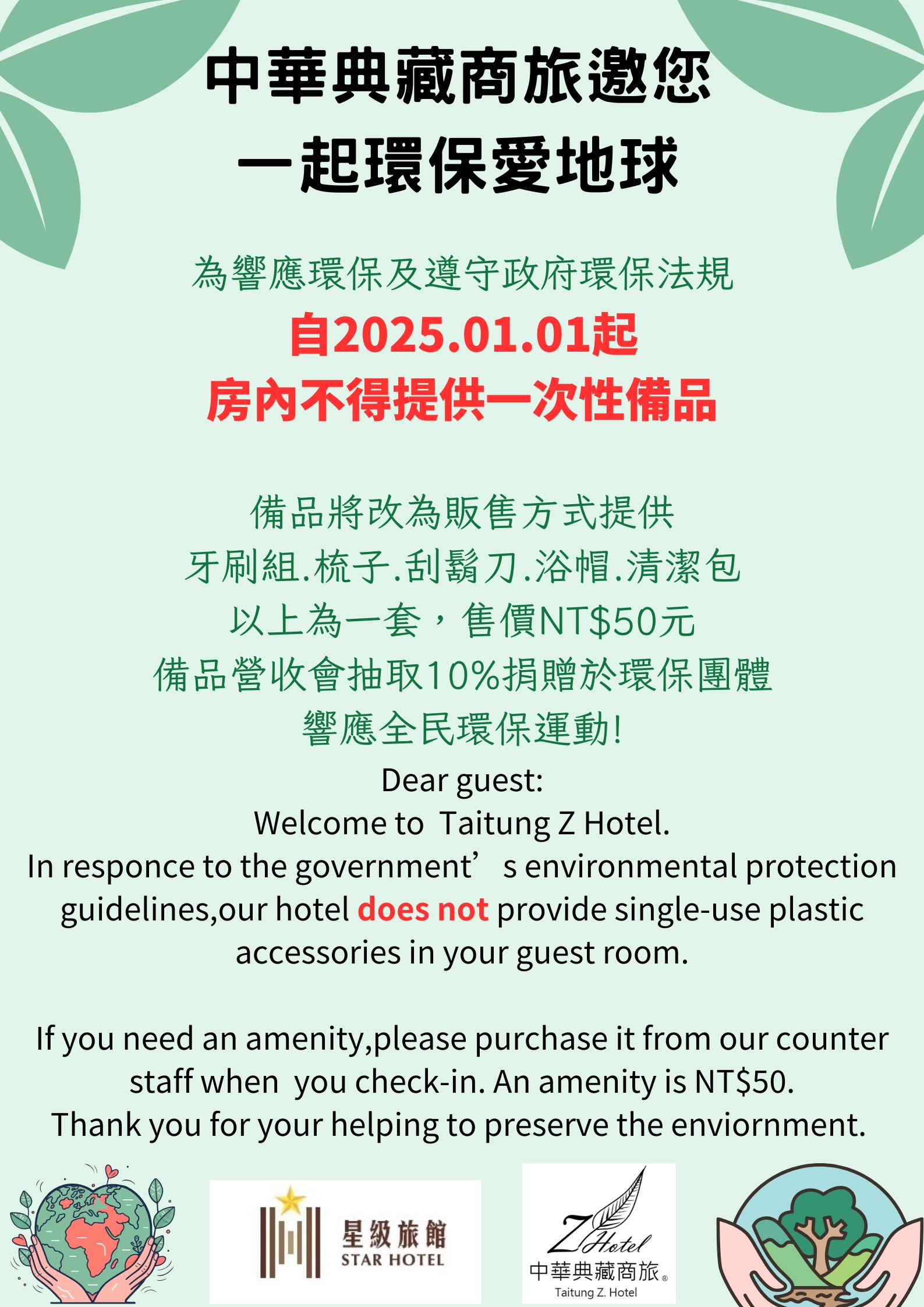 房內不得提供一次性備品